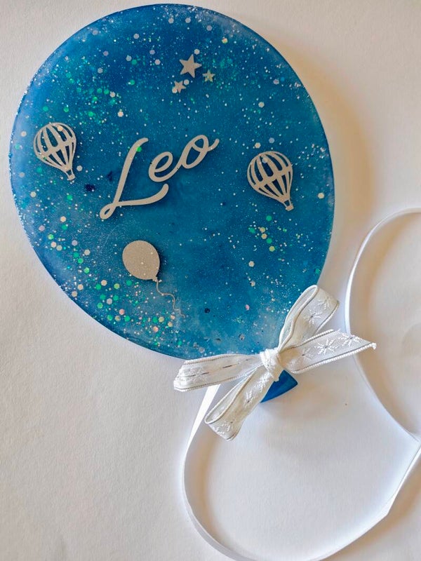 Personalisierter Luftballon aus Epoxidharz – Ein zauberhaftes Geschenk zur Geburt oder Taufe.
